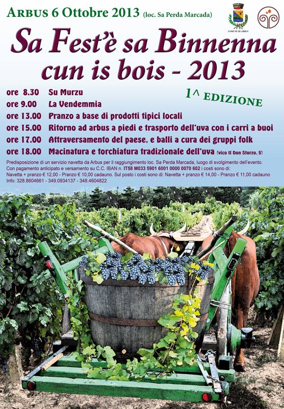 1° EDIZIONE SA FEST’E’ SA BINNENNA CUN IS BOIS – ARBUS – DOMENICA 6 OTTOBRE 20131st EDITION SA FEST’E’ SA BINNENNA CUN IS BOIS – ARBUS – SUNDAY OCTOBER 6