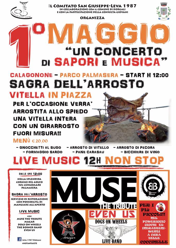 1° MAGGIO – CONCERTO DI SAPORI E MUSICA – SAGRA DELL’ARROSTO – VITELLA IN PIAZZA- CALA GONONE – LUNEDI 1 MAGGIO 2017