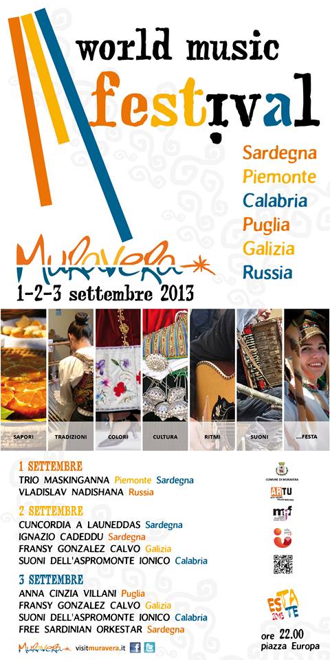 1° WORLD MUSIC FESTIVAL – MURAVERA – 1-2-3 SETTEMBRE 20131st WORLD MUSIC FESTIVAL – MURAVERA – SEPTEMBER 1 TO 3