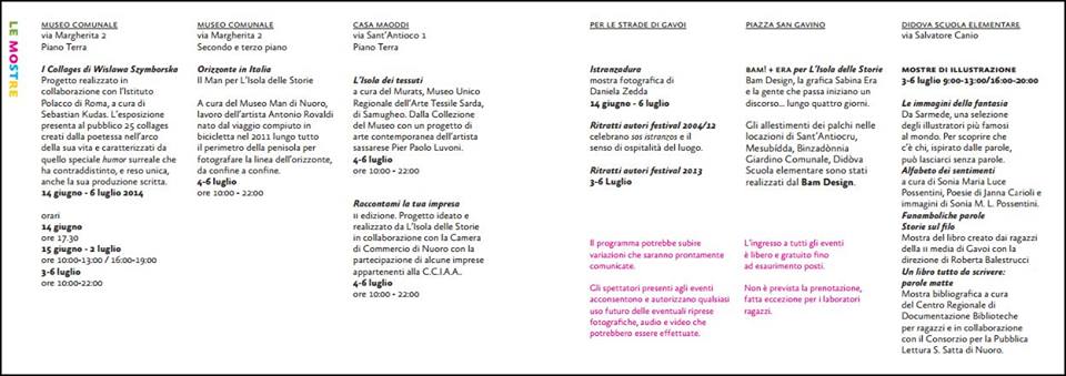 11° EDIZIONE FESTIVAL LETTERARIO DELLA SARDEGNA – GAVOI – 4-5-6 LUGLIO 201411th LITERARY SARDINIA FESTIVAL – GAVOI – JULY 4-5-6,2014