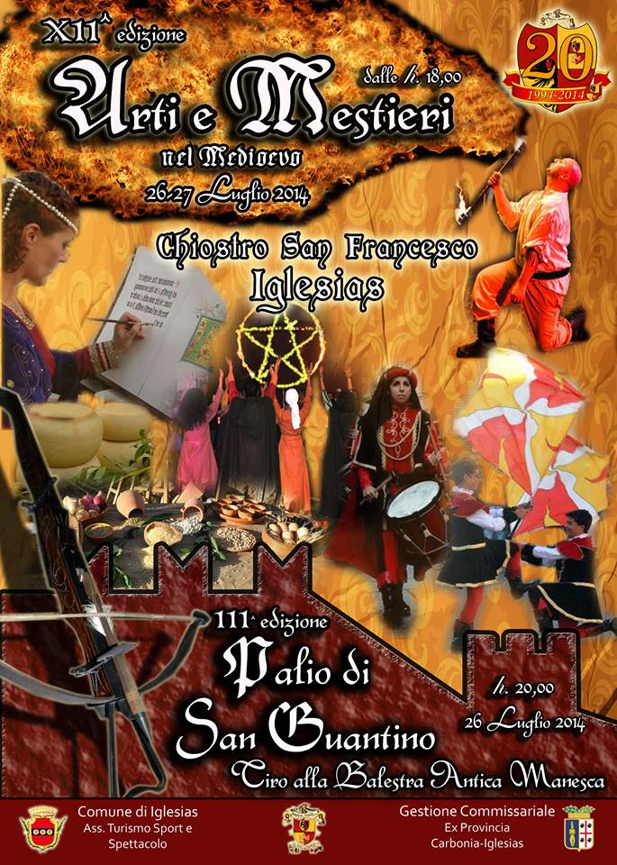 12°EDIZIONE ARTI E MESTIERI & 3° PALIO SAN GUANTINO – IGLESIAS – 26-27 LUGLIO 201412th ARTS AND CRAFTS & 3th SAN GUANTINO GLOVE – IGLESIAS – JULY 26 TO 27,2014 Reviewed by admin on . ARTI E MESTIERI NEL MEDIOEVO PALIO DI SAN GUANTINO 26-27 LUGLIO 2014 CHIOSTRO SAN FRANCESCO, IGLESIAS   A BREVE NUOVE NEWSARTS AND CRAFTS IN THE MIDDLE AGE ARTI E MESTIERI NEL MEDIOEVO PALIO DI SAN GUANTINO 26-27 LUGLIO 2014 CHIOSTRO SAN FRANCESCO, IGLESIAS   A BREVE NUOVE NEWSARTS AND CRAFTS IN THE MIDDLE AGE Rating: 0