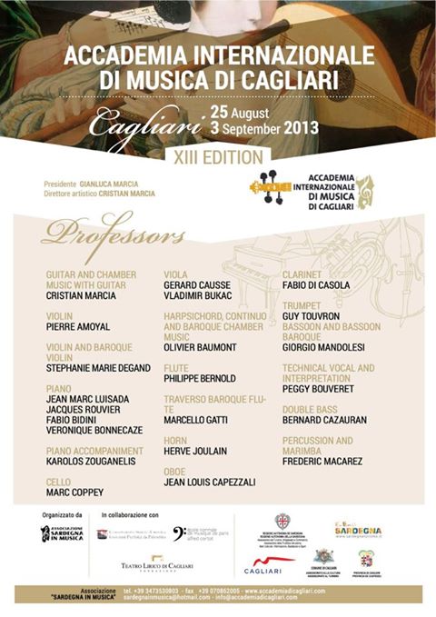 13° EDIZIONE ACCADEMIA E FESTIVAL INTERNAZIONALE DI MUSICA -CAGLIARI -25 AGOSTO- 3 SETTEMBRE 201313th INTERNATIONAL MUSIC ACADEMY AND FESTIVAL – CAGLIARI – AUGUST 25 TO SEPTEMBER 3