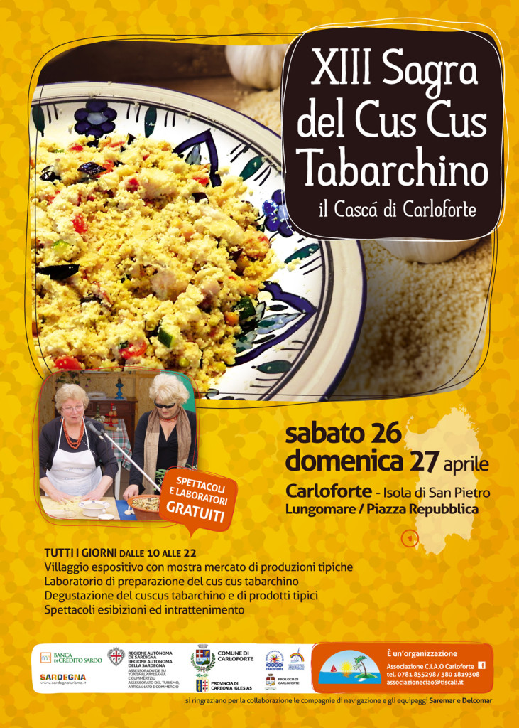 13° SAGRA DEL CUS CUS TABARCHINO – CARLOFORTE – ISOLA S.PIETRO – 26-27 APRILE 201413th EDITION CUS CUS TABARCHINO FESTIVAL – CARLOFORTE – S.PIETRO ISLE – APRIL 26 TO 27,2014