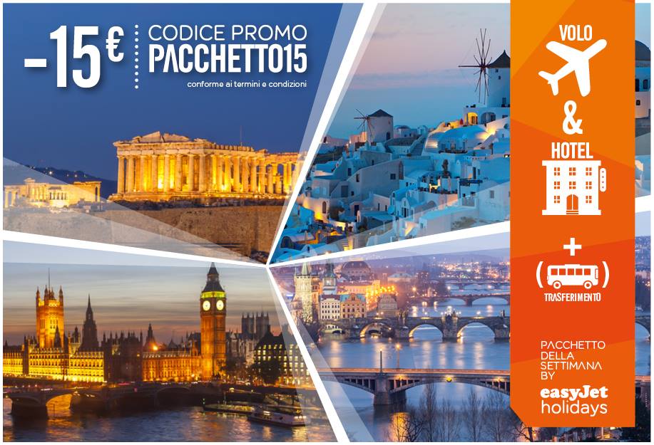 15 € DI SCONTO SUI PACCHETTI VOLO+HOTEL DI EASYJET HOLIDAYSSAVE 15 € FOR FLY+HOTEL OF EASYJET HOLIDAYS Reviewed by admin on . 15€ DI SCONTO SUL TUO PACCHETTO VACANZE Scopri ogni martedì i nostri pacchetti della settimana e regalati una vacanza al miglior prezzo (volo & hotel + tran 15€ DI SCONTO SUL TUO PACCHETTO VACANZE Scopri ogni martedì i nostri pacchetti della settimana e regalati una vacanza al miglior prezzo (volo & hotel + tran Rating: 0