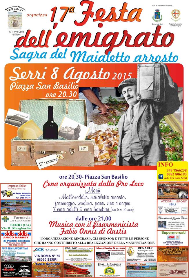 emigrato17° Festa dell’emigrato – Sagra del maialetto arrosto – Serri – Sabato 8 agosto 2015