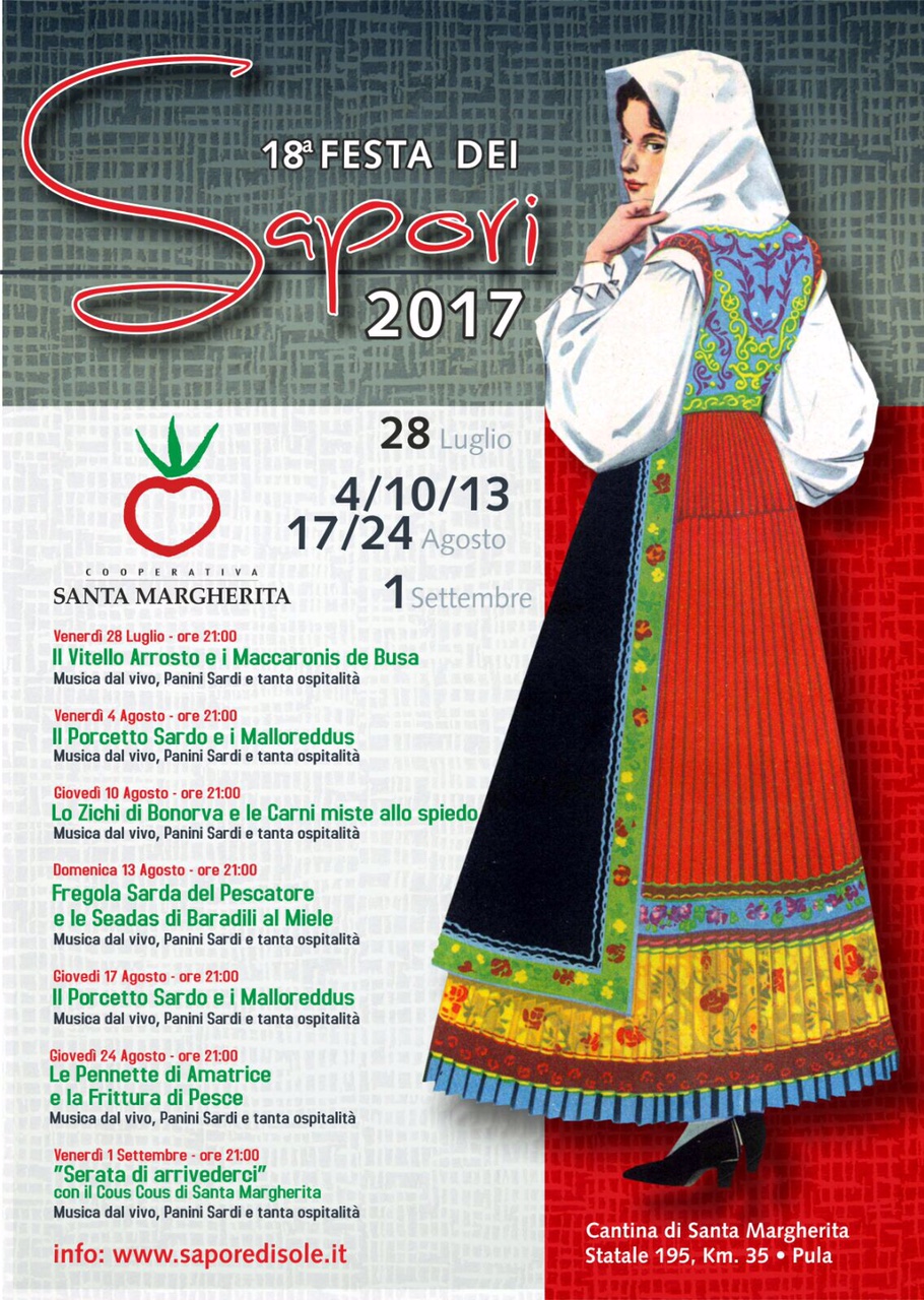 18° FESTA DEI SAPORI – SANTA MARGHERITA DI PULA – 28 LUGLIO-4/10/13/17/24 AGOSTO- 1 SETTEMBRE 2017