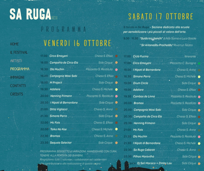 2° EDIZIONE SA RUGA – FESTIVAL INTERNAZIONALE DI ARTI DI STRADA- CAGLIARI -16-17 OTTOBRE 2015