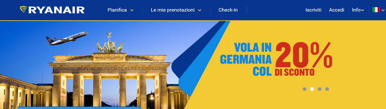 20% SCONTO PER CHI VOLA IN GERMANIA CON RYANAIR – TARIFFE A PARTIRE DA 4 €