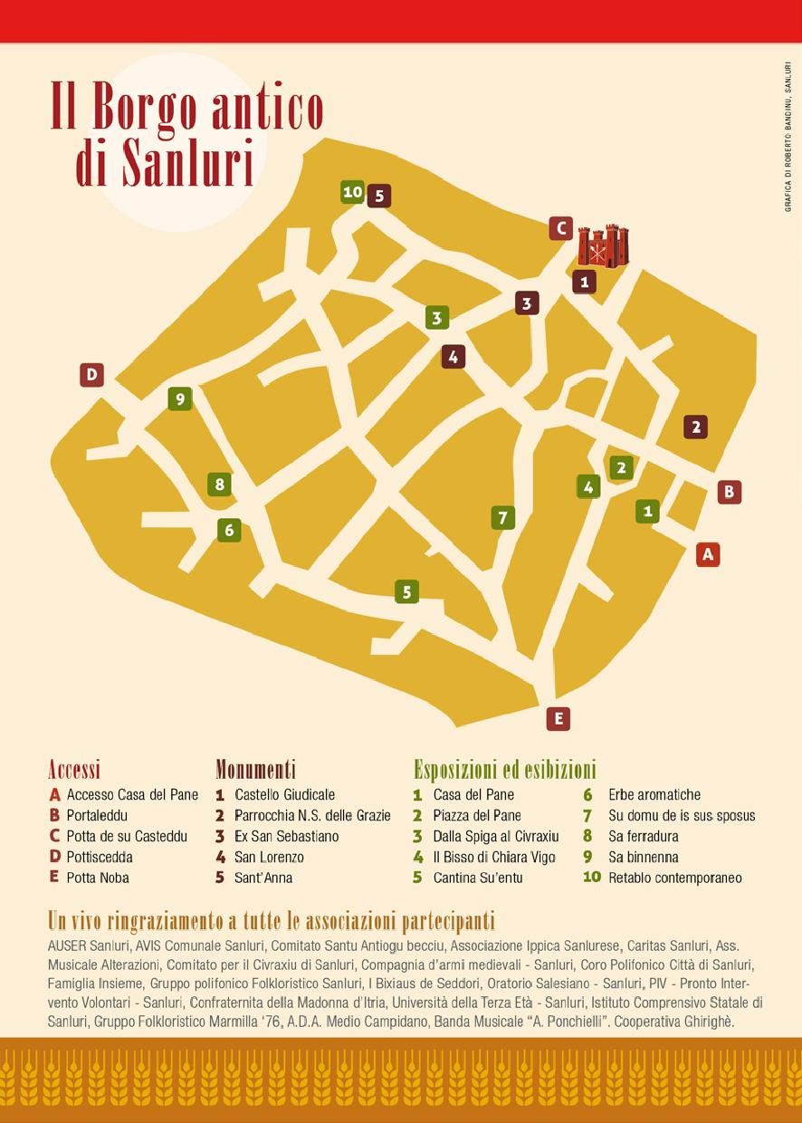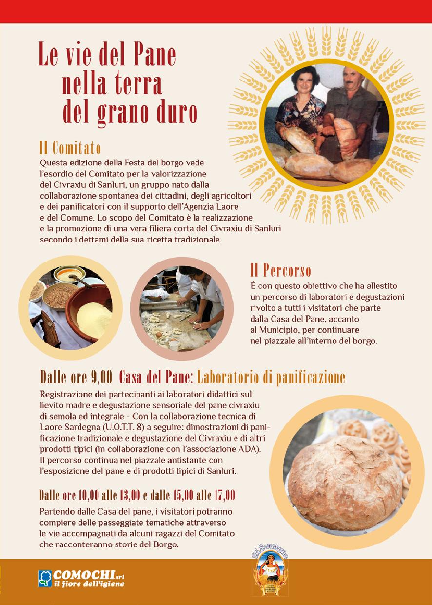 Per questo Pro Loco e Comune si avvarranno della preziosa collaborazione del Comitato per la valorizzazione del civraxiu di Sanluri, dell’Agenzia Laore, dei panificatori cittadini e delle Associazioni locali.