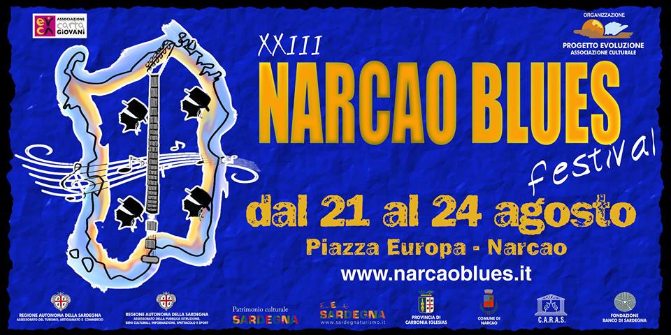 Quel cappello, tipico dei bluesman, indosso ai Quattro Mori e il manico di una chitarra che attraversa la Sardegna da nord a sud. E’ un logo all’insegna di un legame indissolubile, tra la terra d’origine del blues (il sud degli Stati Uniti) e la Sardegna, terra d’adozione, quello creato da due giovani appassionati, Claudio Anedda di Narcao e Alessio Sanna di Cagliari, per la XXIII edizione della rassegna internazionale “Narcao Blues Festival” che, da mercoledì 21 a sabato 24 agosto, a Narcao, tranquillo centro del Sulcis, si prepara ad ospitare il tradizionale appuntamento con la musica afroamericana e i suoi migliori interpreti.