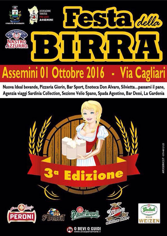 3° EDIZIONE FESTA DELLA BIRRA- ASSEMINI – SABATO 1 OTTOBRE 2016