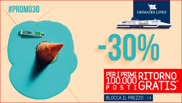 30% SCONTO PER VIAGGIARE CON GRIMALDI VERSO SARDEGNA,SICILIA,GRECIA E SPAGNA