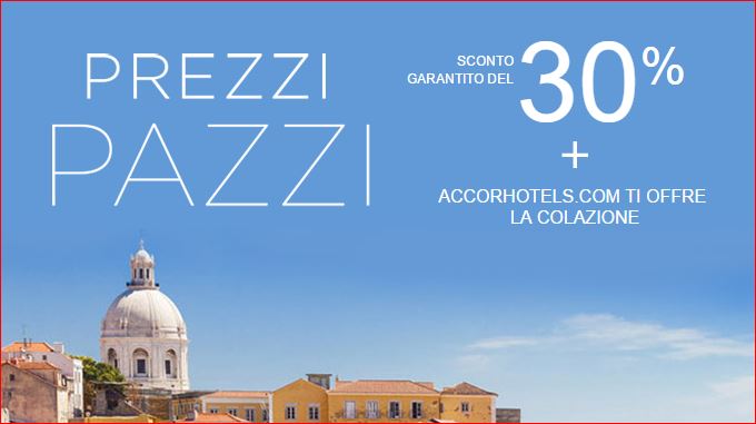 30% SCONTO SU TUTTI GLI ACCOR HOTELS E LA COLAZIONE E’ GRATIS