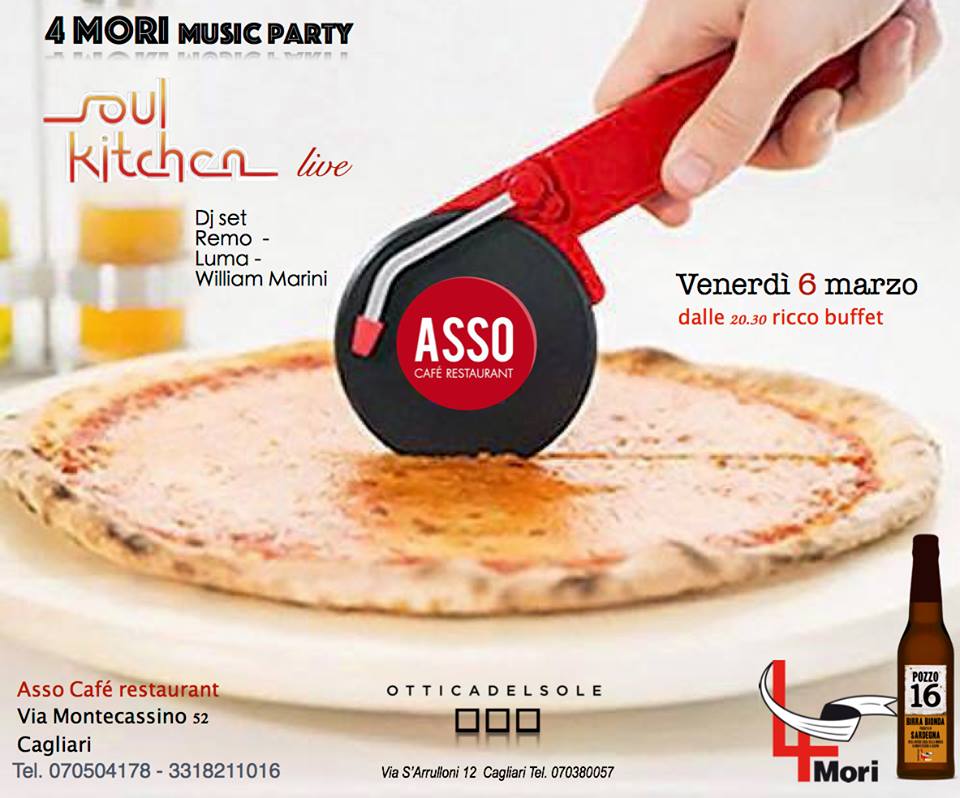 4 MORI MUSIC PARTY & SOUL KITCHEN LIVE – ASSO CAFE’ RESTAURANT – CAGLIARI – VENERDI 6 MARZO 2015