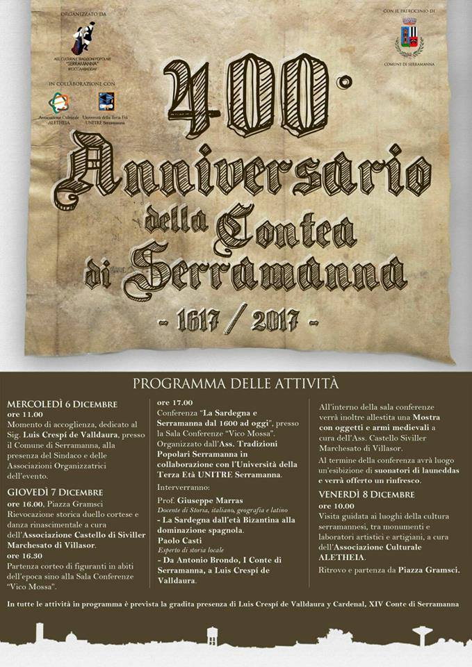 SERRAMANNASerramanna – 400° anniversario della Contea di Serramanna – 6, 7 e 8 dicembre 2017