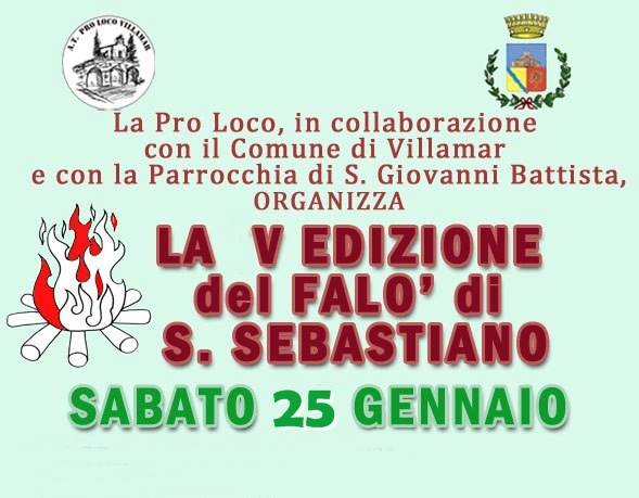 La Pro.Loco, in collaborazione con la Parrocchia S. Giovanni Battista e il Comune di Villamar, vi invita alla V Edizione del Falò di S. Sebastiano che si terrà SABATO 25 GENNAIO presso i locali dell’Ex Centro I.S.O.L.A.