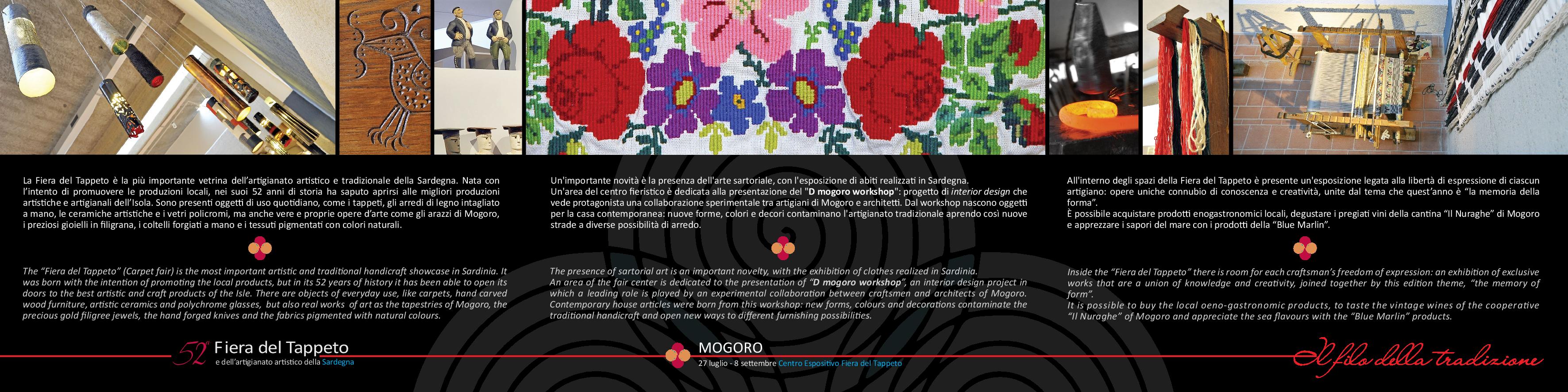 52° FIERA DEL TAPPETO – MOGORO – 27 LUGLIO – 8 SETTEMBRE 201352th CARPET FESTIVAL – MOGORO – FROM JULY 27 TO SEPTEMBER 8, 2013