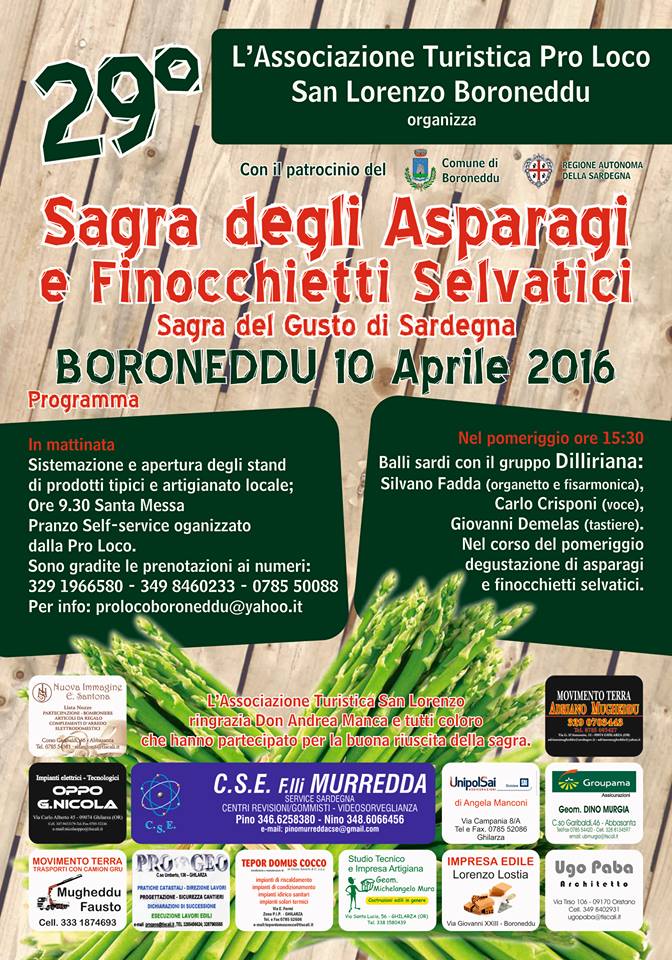 SAGRA DEGLI ASPARAGI E FINOCCHIETTI SELVATICI – BORONEDDU – DOMENICA 10 APRILE 2016