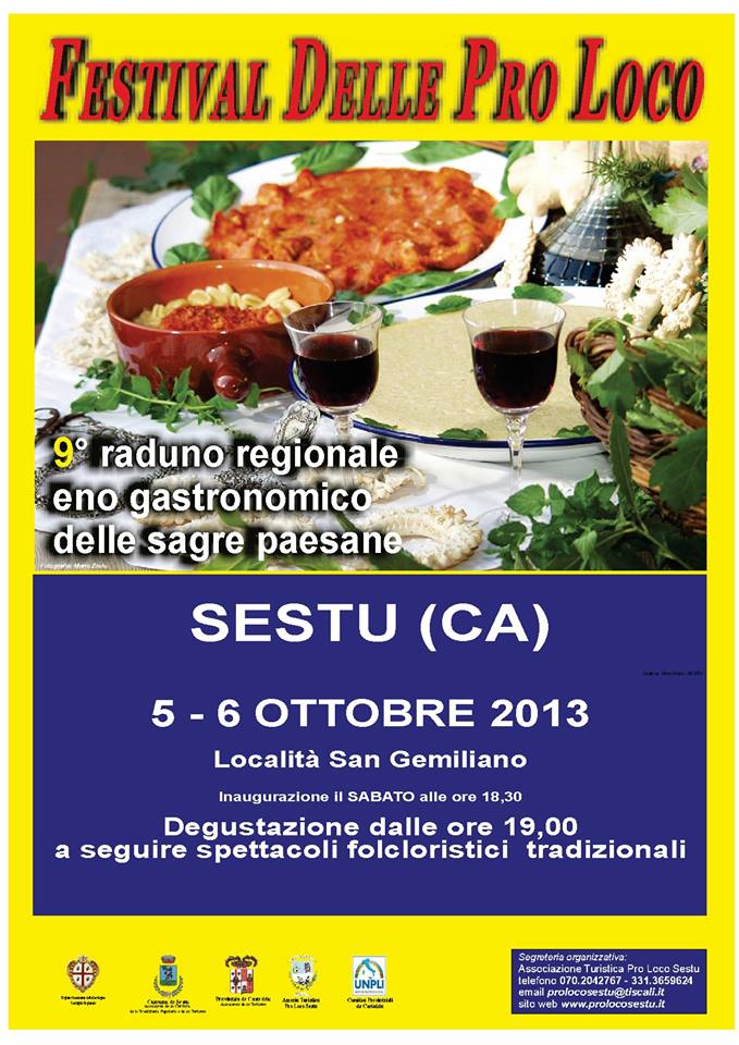 9° EDIZIONE FESTIVAL DELLE PRO LOCO – SESTU – 5-6 OTTOBRE 20139th EDITION PRO LOCO FESTIVAL – SESTU – OCTOBER 5 TO 6
