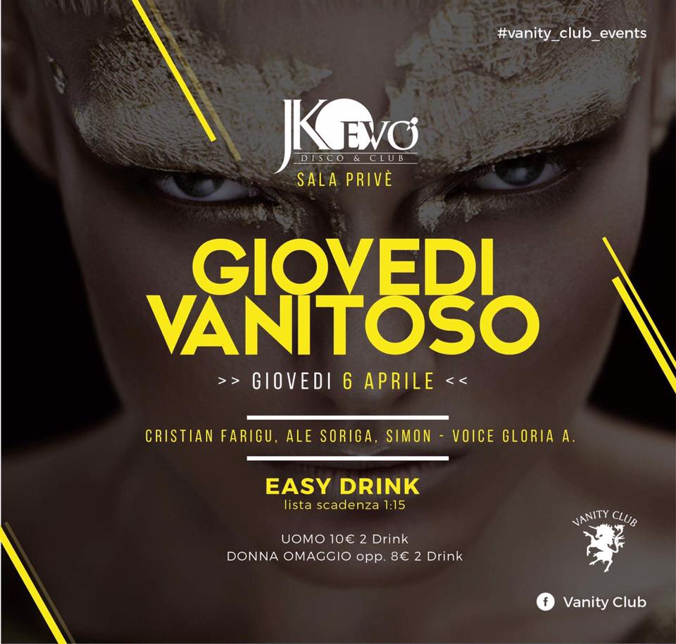 GIOVEDI VANITOSO – JKO EVO’ – CAGLIARI – GIOVEDI 6 APRILE 2017