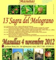Masullas November 4, 2012 15:30 pm Piazza San Francesco, pomegranate liqueur Masullas preparation of Distilleries Lussurgesi of Santulussurgiu, jam, pies, drinks pomegranate such beautiful music with the group "" Harmony Sardinian "with James Crobu, Francesco Fais, Elisha Maxia and Constantine Crobu, exhibitions, collection of paintings of artists Gisella Walls, Mario Cau, Sandro Marchi, Mariano and Michele ...