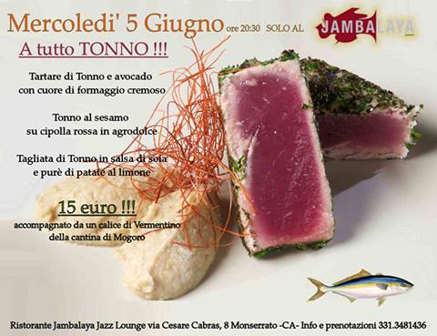 A TUTTO TONNO – JAMBALAYA JAZZ LOUNGE – MONSERRATO – MERCOLEDI 5 GIUGNOTUNA FESTIVAL – JAMBALAYA JAZZ LOUNGE – MONSERRATO – WEDNESDAY JUNE 5