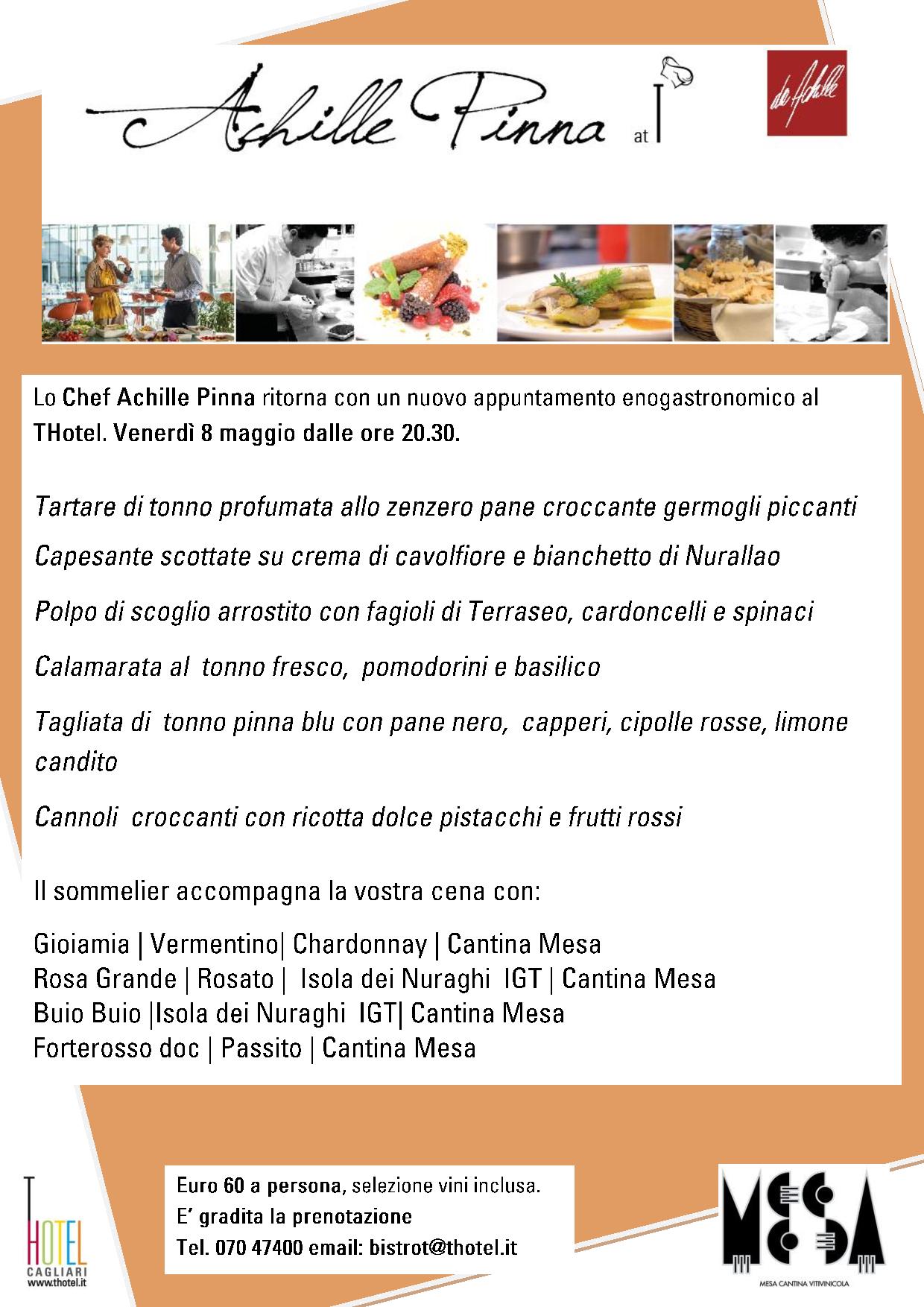 Lo Chef Achille Pinna ritorna con un nuovo appuntamento enogastronomico al THotel, venerdì 8 maggio dalle ore 20.30.