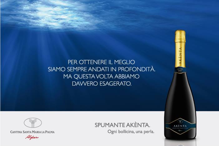 Lunedì 5 Gennaio presentiamo Akenta, lo spumante prodotto da Santa Maria La Palma e affinato per diversi mesi nei fondali del parco naturale di Porto Conte.