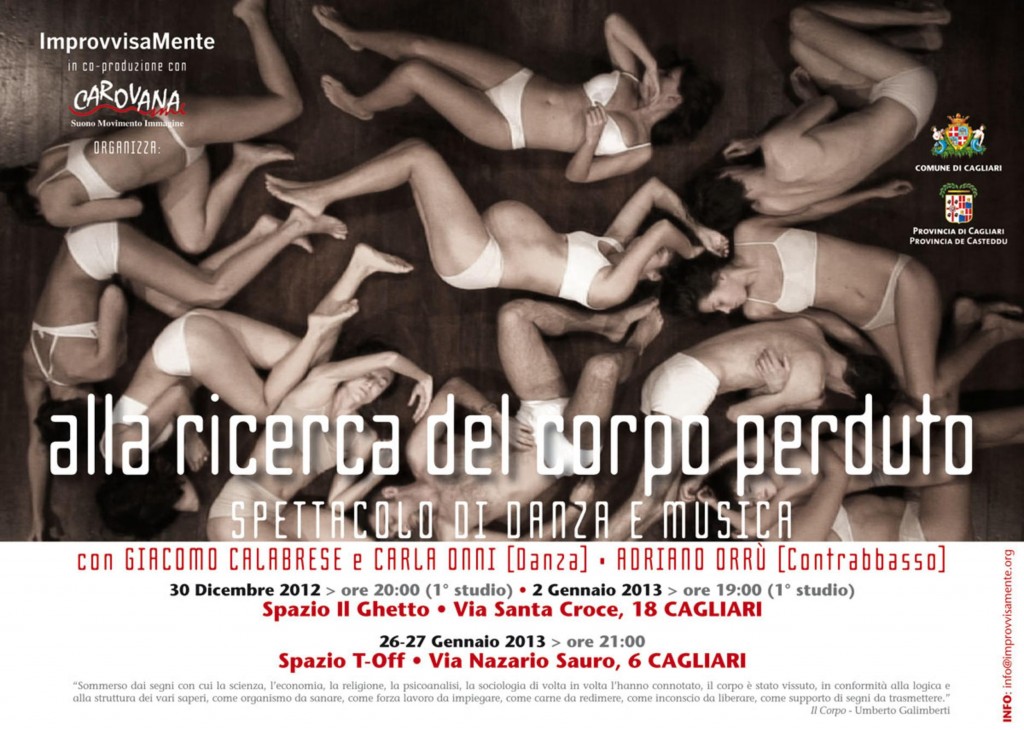 “Alla Ricerca del Corpo Perduto” è un progetto di improvvisaMente in co-produzione con Carovana SMI, realizzato grazie al fondamentale sostegno del Comune e della Provincia di Cagliari: dopo un’anteprima in forma di Primo Studio fra dicembre e gennaio, lo spettacolo vedrà la luce nello Spazio T-Off.