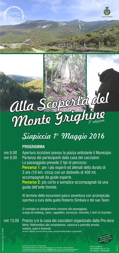 ALLA SCOPERTA DEL MONTE GRIGHINE – SIAPICCIA- DOMENICA 1 MAGGIO 2016