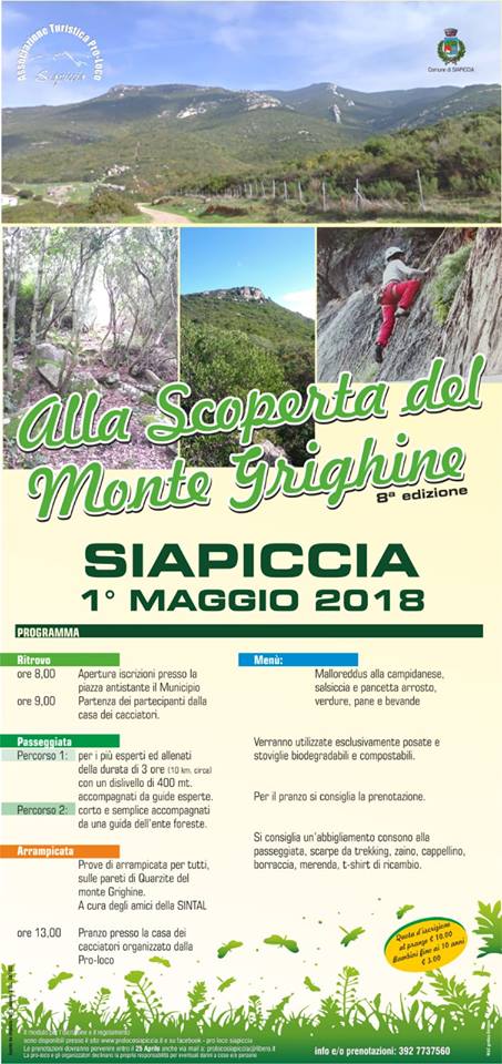 ALLA SCOPERTA DEL MONTE GRIGHINE – SIAPICCIA- MARTEDI 1 MAGGIO 2018