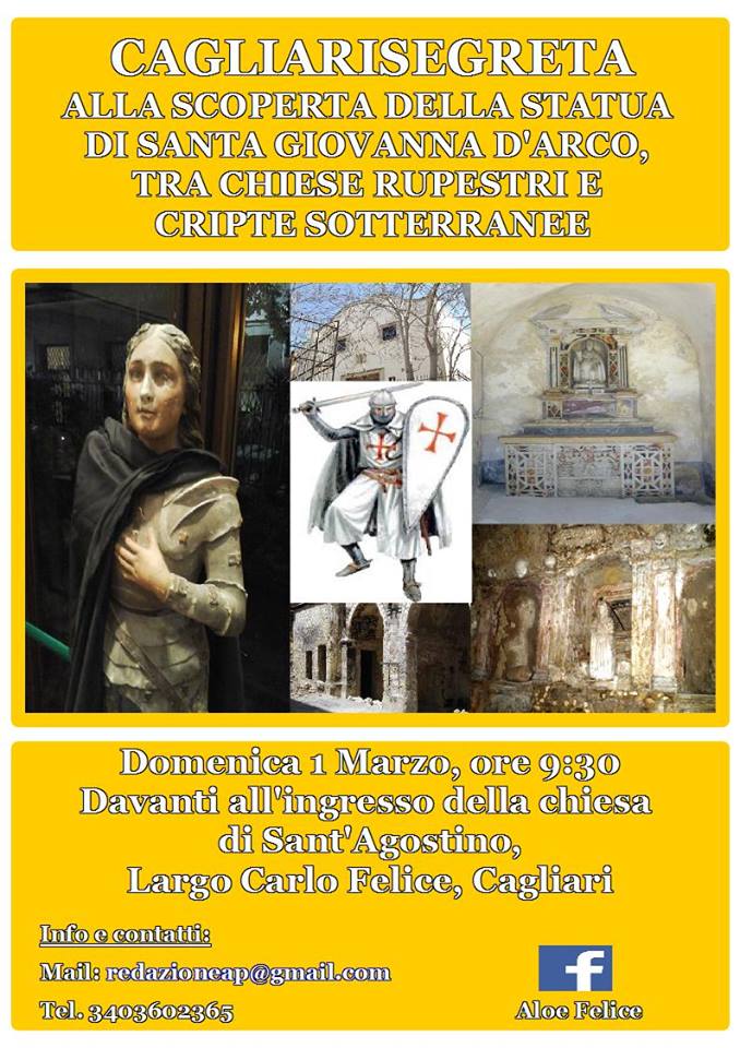ALLA SCOPERTA DELLA STATUA DI SANTA GIOVANNA D’ARCO – CAGLIARI – DOMENICA 1 MARZO 2015 Reviewed by admin on . CAGLIARISEGRETA ALLA SCOPERTA DELLA STATUA DI SANTA GIOVANNA D'ARCO Domenica 1 marzo, in città, all'insegna della scoperta della CagliariSegreta, tra santi guer CAGLIARISEGRETA ALLA SCOPERTA DELLA STATUA DI SANTA GIOVANNA D'ARCO Domenica 1 marzo, in città, all'insegna della scoperta della CagliariSegreta, tra santi guer Rating: 0