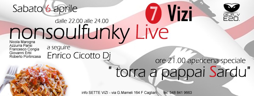 APERICENA & NONSOULFUNKY – SETTE VIZI – CAGLIARI – SABATO 6 APRILEAPERIDINNER & NONSOULFUNKY – SETTE VIZI – CAGLIARI – SATURDAY AVRIL 6