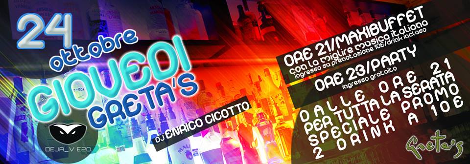 APERICENA & PARTY – GRETA’S – CAGLIARI – GIOVEDI 24 OTTOBRE 2013APERIDINNER & PARTY – GRETA’S – CAGLIARI – THURSDAY OCTOBER 24