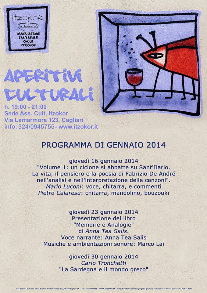 APERITIVI CULTURALI – ASS ITZOKOR – CAGLIARI – GIOVEDI 23 GENNAIO 2014CULTURAL APERITIF – ASS. ITZOKOR – CAGLIARI – THURSDAY JANUARY 23,2014