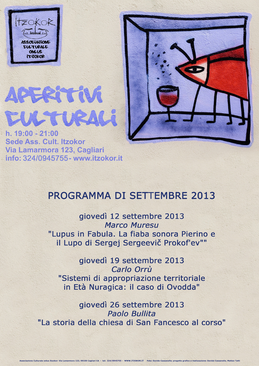 APERITIVI CULTURALI – ASSOCIAZIONE ITZOKOR – CAGLIARI – GIOVEDI 12,19,26 SETTEMBRE 2013CULTURAL APERITIF – ASSOCIATION ITZOKOR – CAGLIARI – THURSDAY SEPTEMBER 12,19,26