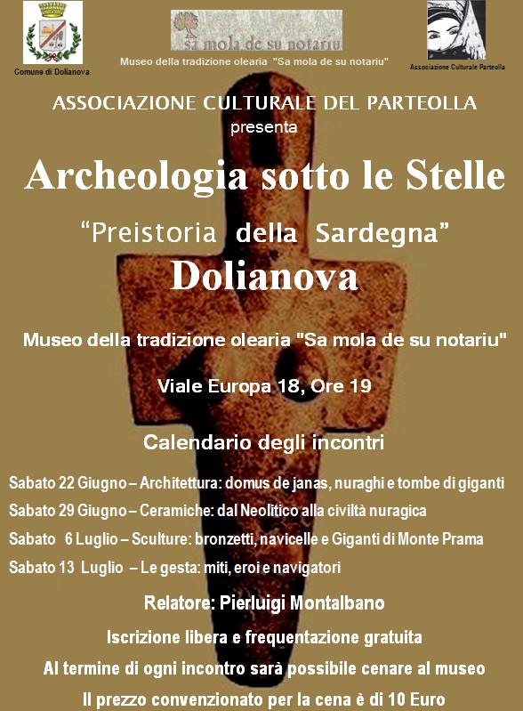 ARCHEOLOGIA SOTTO LE STELLE – MUSEO DELL’OLIO – DOLIANOVA – SABATO 6 LUGLIO 2013ARCHAELOGY UNDER THE STARS – OIL MUSEUM – DOLIANOVA – SATURDAY JULY 6th Reviewed by admin on . sabato 6 Luglio al museo dell'Olio di Dolianova, alle ore 19.30 con ingresso libero. Archeologia sotto le stelle: conferenza su Bronzetti nuragici e Giganti di sabato 6 Luglio al museo dell'Olio di Dolianova, alle ore 19.30 con ingresso libero. Archeologia sotto le stelle: conferenza su Bronzetti nuragici e Giganti di Rating:
