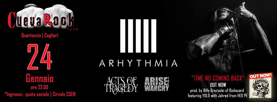 Prima data a Cagliari per gli ARHYTHMIA, dopo il Tour che li ha visti condividere i palchi di tutta Europa con i Biohazard, approdano a “La Cuevarocklive LiveMusic” per
