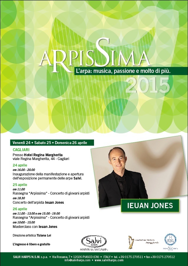 Dal 24 al 26 aprile, nelle eleganti sale dell’Hotel Regina Margherita di Cagliari, si terrà la manifestazione “Arpissima”, promossa dalla ditta “Salvi”, leader mondiale nella produzione di arpe, in collaborazione con l’Associazione Musicale “Arpeggiando”, con la direzione musicale di Tiziana Loi.