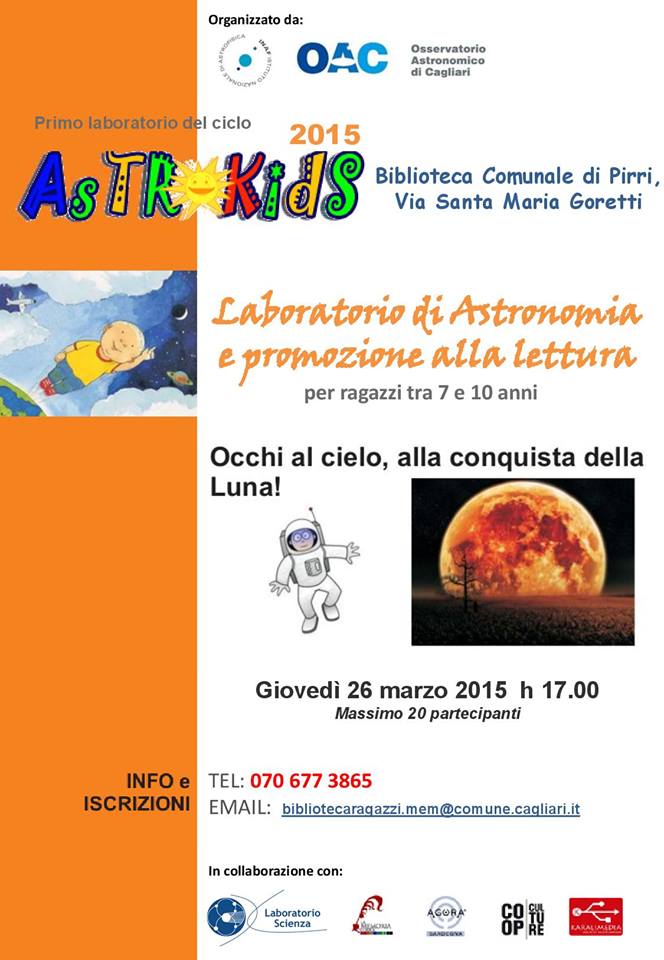 ASTROKIDS 2015 – OCCHI AL CIELO ALLA CONQUISTA DELLA LUNA – BIBLIOTECA COMUNALE -PIRRI – GIOVEDI 26 MARZO 2015