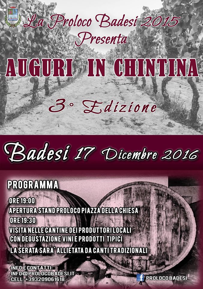 Torna anche quest’anno la manifestazione enologica “Auguri in Chintina”, che si svolge nel periodo natalizio a Badesi, località gallurese.