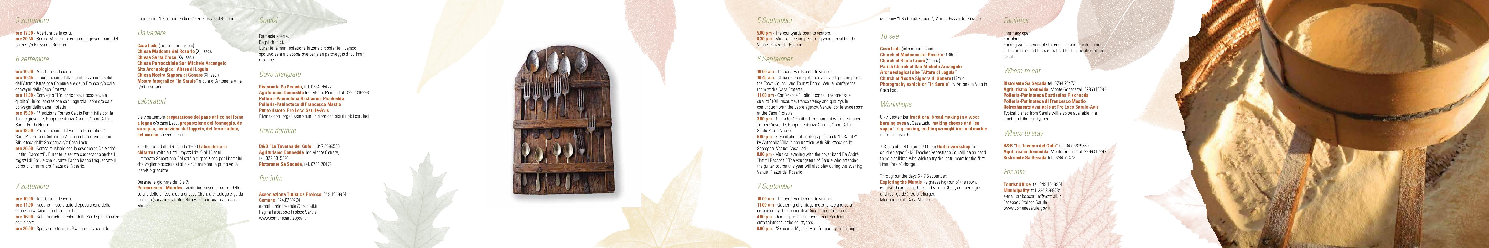 Along Murals – 6th and 7th September Sightseeing of the country, de “sas cortes” and churches by Luca Cheri, archaeologist and tour guide (free service). Meeting point of departure House Museum