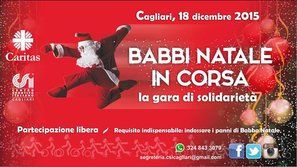 Dopo il successo della prima edizione, venerdì 18 dicembre 2015 per le vie di Cagliari ritorna la gara della solidarietà : dal piazzale della Basilica di Bonaria prenderà il via una corsa non competitiva, aperta a chiunque voglia aiutare il prossimo.