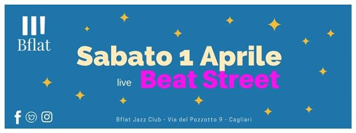BEAT STREET LIVE – BFLAT – CAGLIARI – SABATO 1 APRILE 2017 Reviewed by admin on . IL SABATO DEL BFLAT I Beat Street nascono a Cagliari nel 2013, dall' unione di 6 musicisti appartenenti a diverse influenze musicali, creando un repertorio in c IL SABATO DEL BFLAT I Beat Street nascono a Cagliari nel 2013, dall' unione di 6 musicisti appartenenti a diverse influenze musicali, creando un repertorio in c Rating: 0
