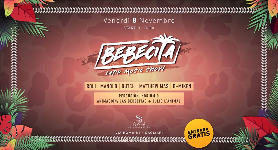 BEBECITA CLUB 84VENERDI 8 Novembre 2019 dalla mezzanotte all’alba Club 84 – Via Roma (Cagliari).