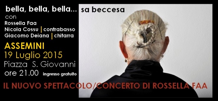 BELLA,BELLA,BELLA…SA BECCESA – TEATRO DEL SEGNO – ASSEMINI – DOMENICA 19 LUGLIO 2015 Reviewed by admin on . teatro I del I segno “Bella, bella, bella … sa Beccesa” di e con Rossella Faa e con Giacomo Deiana (chitarra) e Nicola Cossu (Contrabasso) ASSEMINI DOMENICA 19 teatro I del I segno “Bella, bella, bella … sa Beccesa” di e con Rossella Faa e con Giacomo Deiana (chitarra) e Nicola Cossu (Contrabasso) ASSEMINI DOMENICA 19 Rating: 0