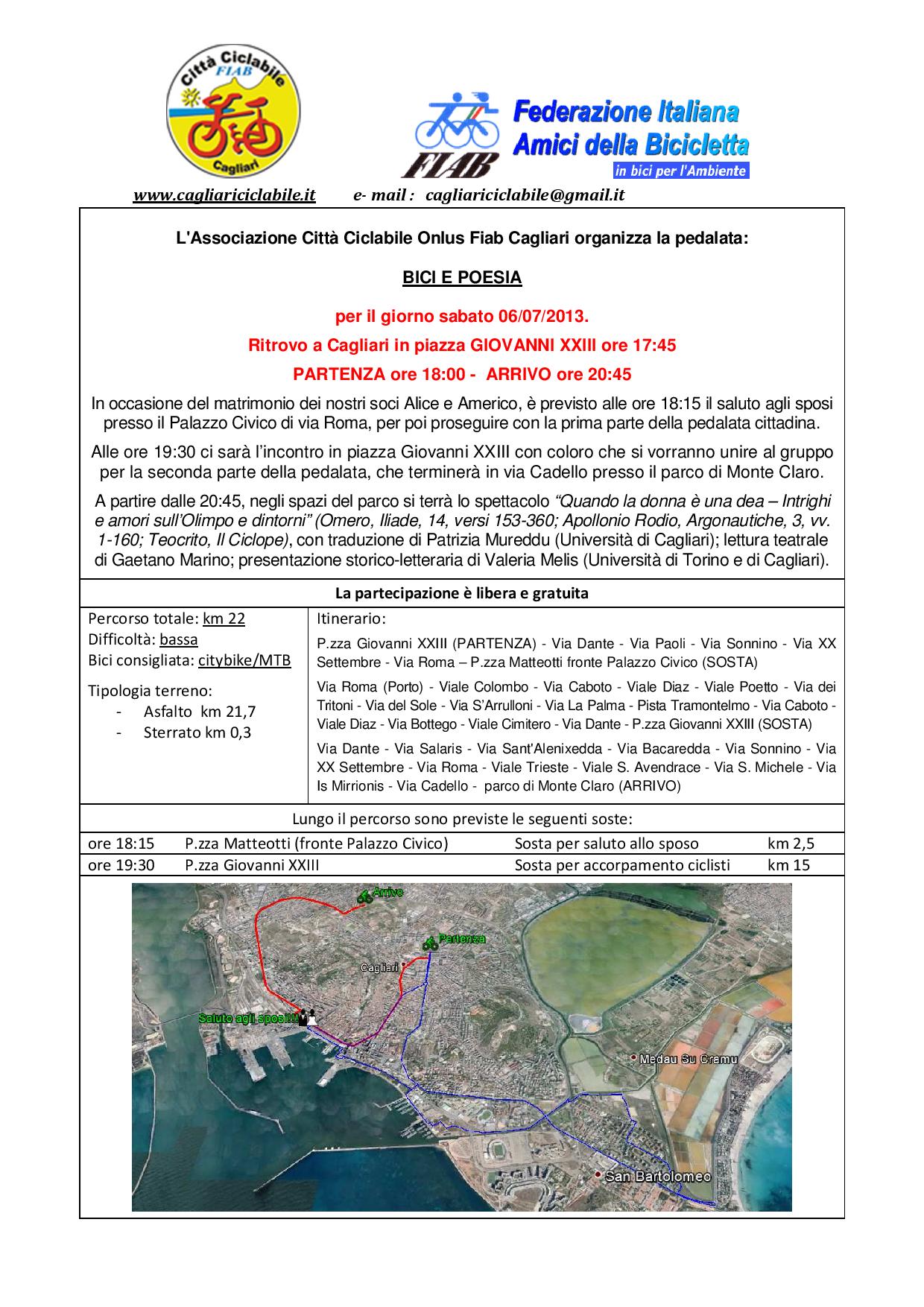 BICI E POESIA – CAGLIARI – SABATO 6 LUGLIO 2013BIKE AND POETRY – CAGLIARI – SATURDAY JULY 6th