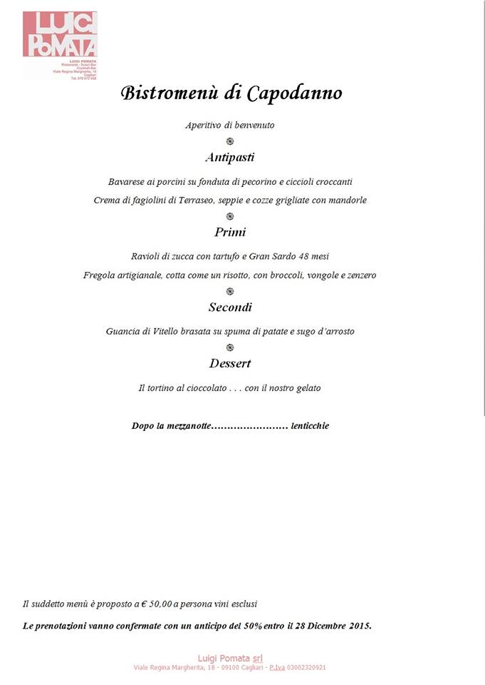 BISTROMENU DI CAPODANNO 2016- RISTORANTE LUIGI POMATA – CAGLIARI – GIOVEDI 31 DICEMBRE 2015