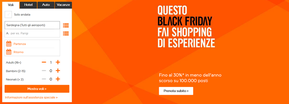 BLACK FRIDAY EASYJET – 100.000 POSTI COL 30% SCONTO RISPETTO AL PREZZO DELL’ANNO SCORSO