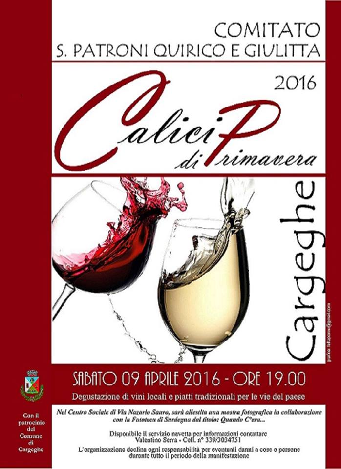 Il Comitato dei SS. Quirico e Giulitta ti invita a Cargeghe, il 9 aprile 2016 ore 19 all’evento “Calici di Primavera”.